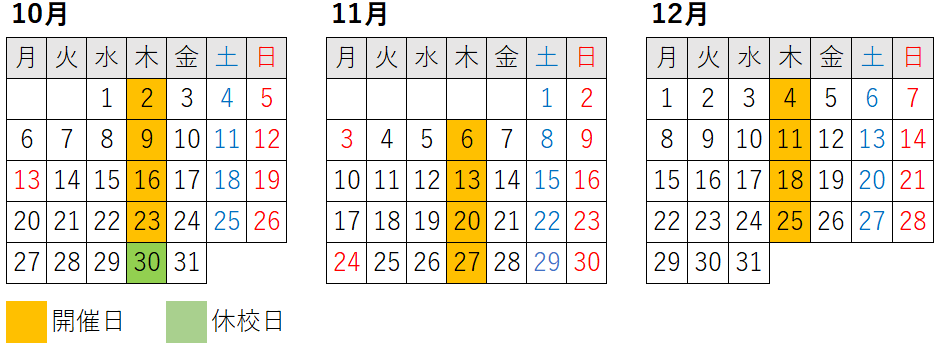 ■体験参加できる日:開催日(毎週木曜日)